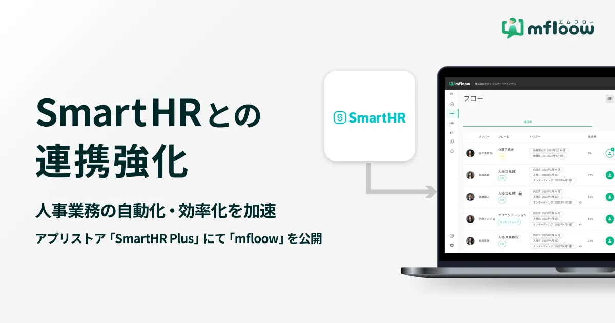 株式会社メタップスホールディングス(以下、メタップス)が提供する従業員ライフサイクル管理ツール「mfloow」は、企業の人事・総務業務の自動化と効率化を支援するため、SmartHRとの連携を強化しました。この連携により、企業は情報管理とタスク管理を一元的に行えるようになり、以前必要だった煩雑な手作業や二重入力が不要になるのです。