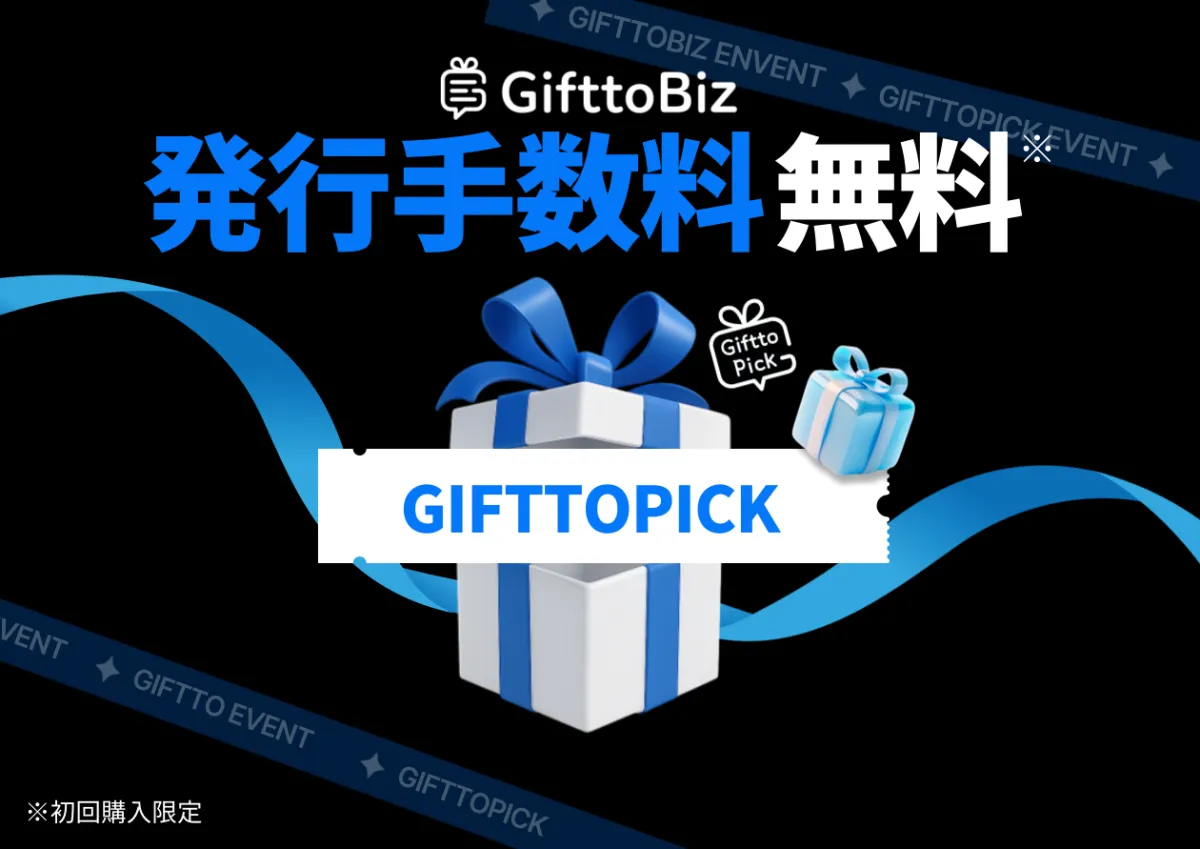 「GifttoPick」の販売開始を記念して、2025年12月31日までの期間限定で、新規会員登録者を対象に、初回購入時の発行手数料を最大10万円割引するキャンペーンを実施しています。特定の手順に従って申込むことで、このお得な割引を利用することができます。