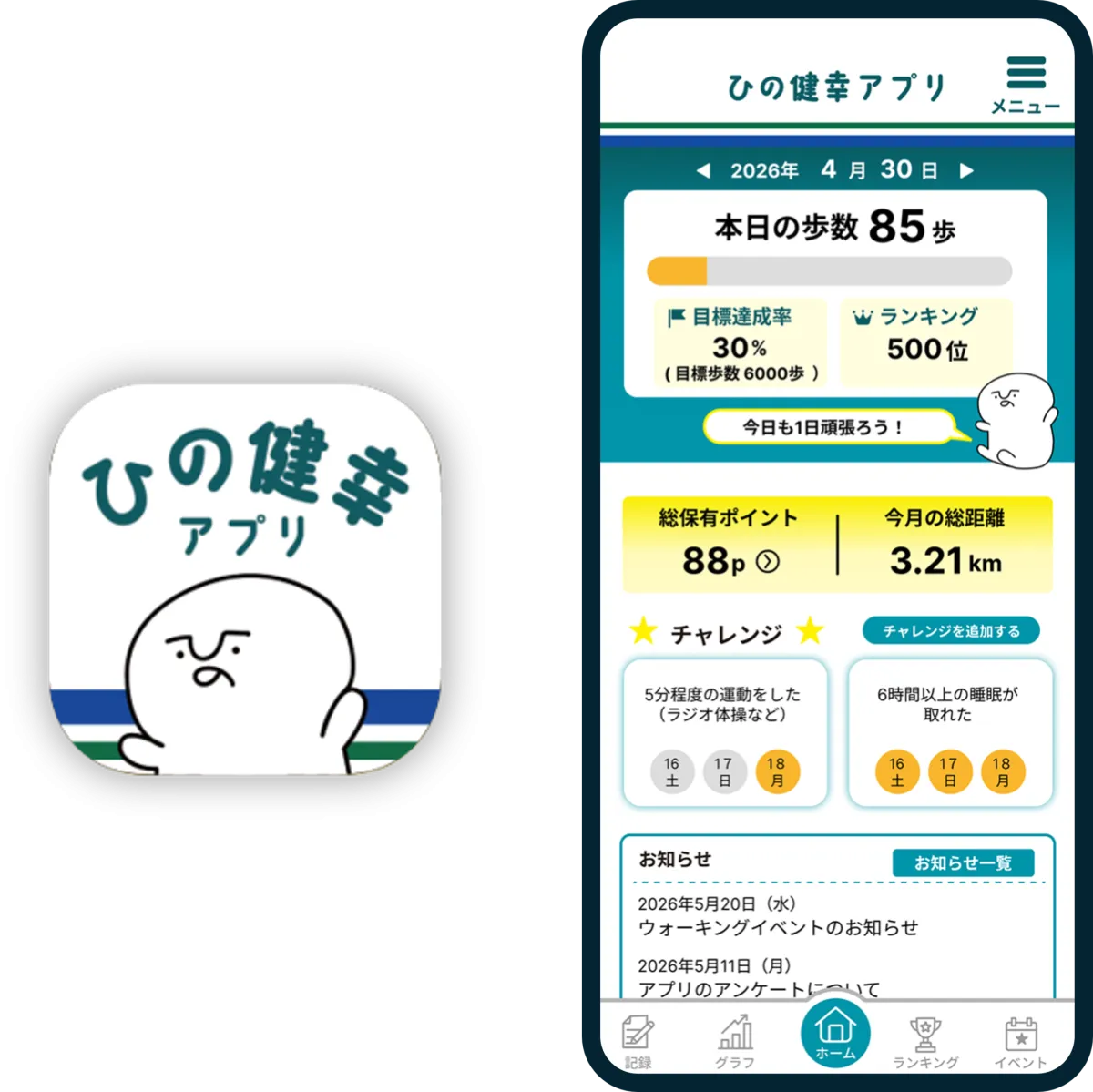 健康と幸福を結ぶ「ひの健幸アプリ」を活用して、あなたも健康づくりを始めてみませんか?