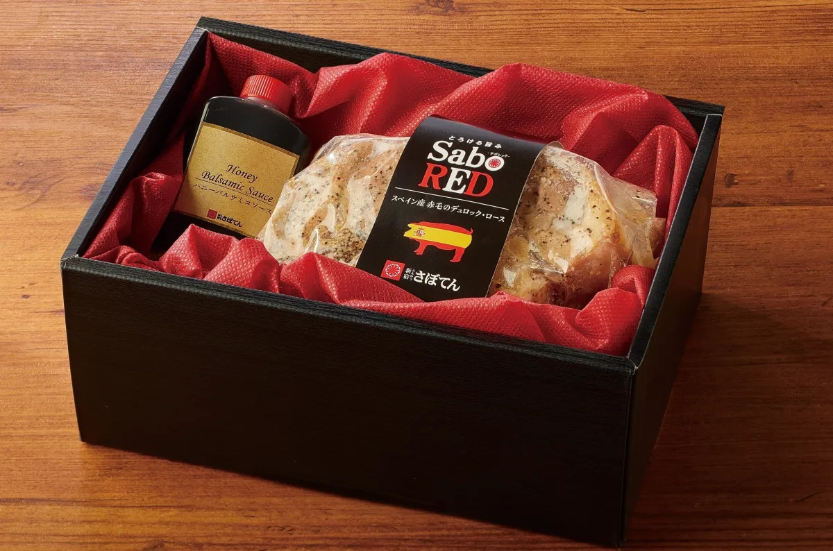 「SaboRED」は、スペイン産純粋デュロックポークから作られたブランドポークで、その脂肪は低い融点を持ち、口の中でとろけるような食感と深いコクを楽しめます。さぼてんでは、この高品質なポークを使用して塩麹に漬け込み、じっくりとローストしました。そのため、冷蔵庫で解凍するだけで、簡単に専門店の味を自宅で楽しむことができます。
