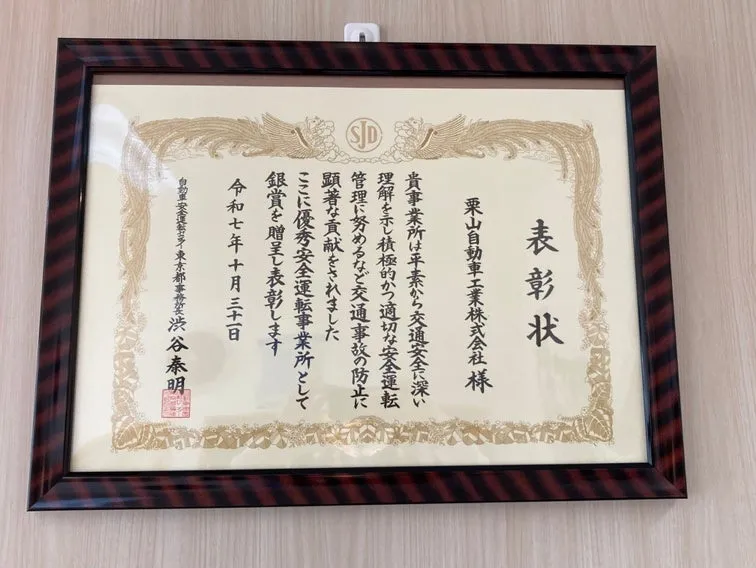 東京、千葉、神奈川に拠点を構える栗山自動車工業株式会社が、東京都の自動車安全運転センターから「令和7年第二期 優秀安全運転事業所等表彰」の銀賞を受賞しました。この表彰は、交通安全に対する取り組みを評価したもので、特に優れた実績を持つ事業所に与えられます。