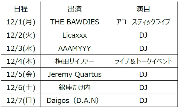 この特別なポップアップストアは、2025年12月1日から7日まで、渋谷区宇田川町で開催され、開店時間は11:00から20:00までです。初日の12月1日(月)は17:00からのオープン、金曜日と土曜日は21:00まで営業します。入場は20歳以上限定となりますので、ご注意ください。