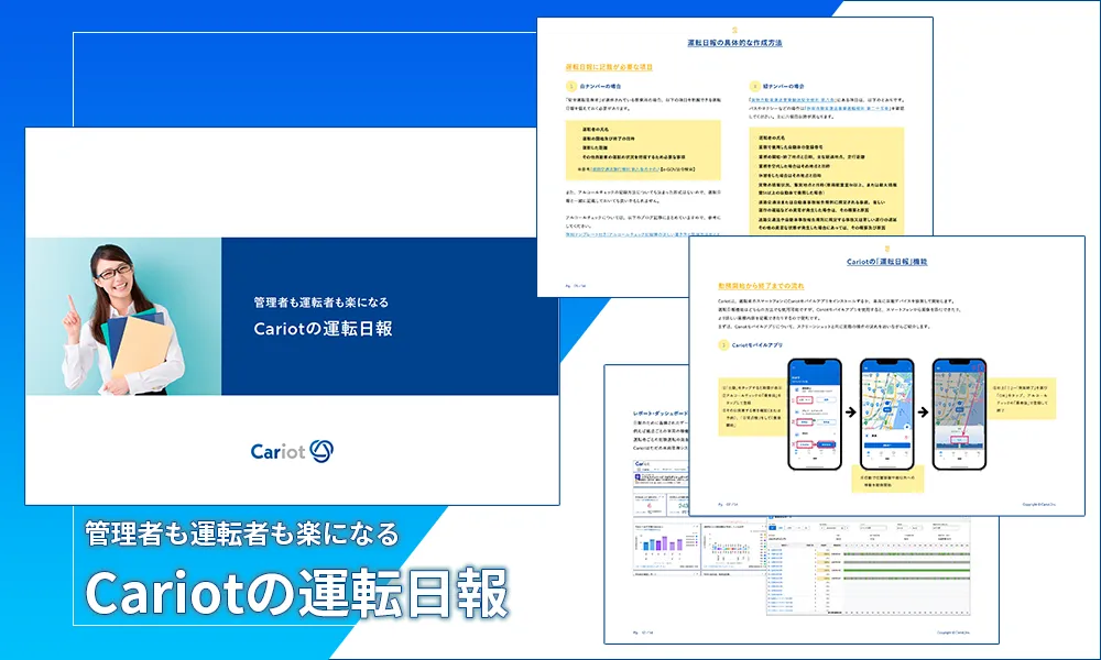 新しい資料のタイトルは『管理者も運転者も楽になるCariotの運転日報』で、運転日報の重要性や、Cariotの運営する運転日報機能について詳しく解説しています。