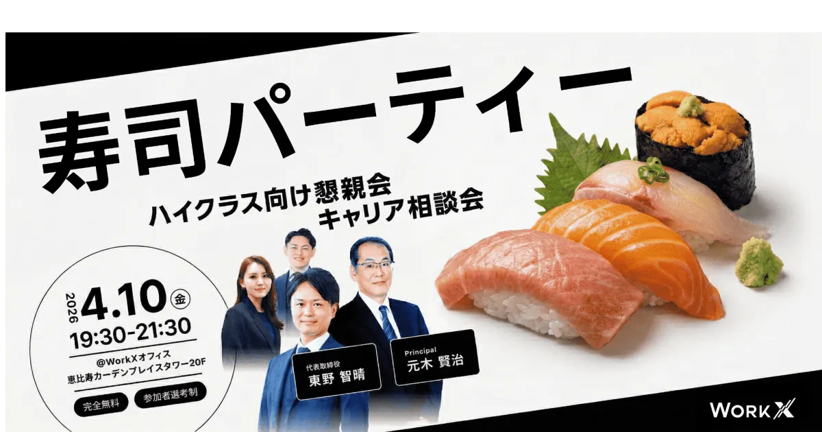 東京都渋谷区に拠点を置く株式会社WorkXが、2026年4月10日(金)に「懇親会兼キャリア相談会」を寿司パーティー形式で開催しました。このイベントは、コンサルティング業界の実情や魅力を学生や現役の皆様に伝えるための大切な場でした。