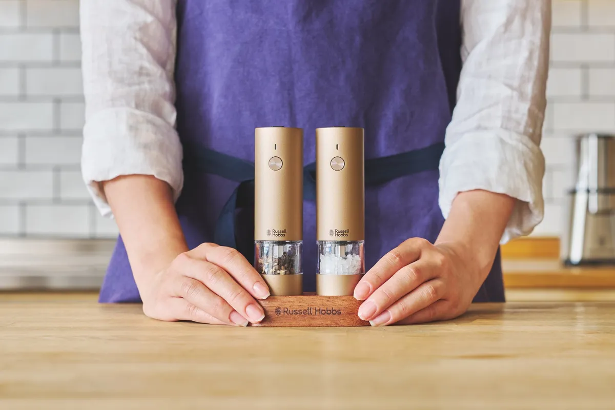Russell Hobbs(ラッセルホブス)が新色の充電式ミル「ソルト&ペッパーミニ」2本セットを発売します。新たに仲間入りするのは、落ち着いた輝きのある「ブラウンゴールド」。この新色は、2025年10月31日(金)から全国の取扱店や公式オンラインショップで順次販売開始されます。価格は8,800円(税込)です。