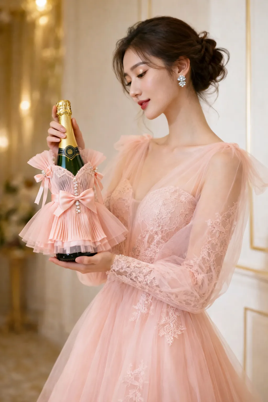 NINA'S合同会社が新たに提供を開始するサービス「シャンパンドール」は、お祝いの場面に華やかさと特別感を加える新しいギフトの形です。シャンパンボトルをドレスデザインで装飾したこのプロダクトは、誕生日や記念日、パーティーなどのイベントシーンを忘れられない体験へと変えてくれます。