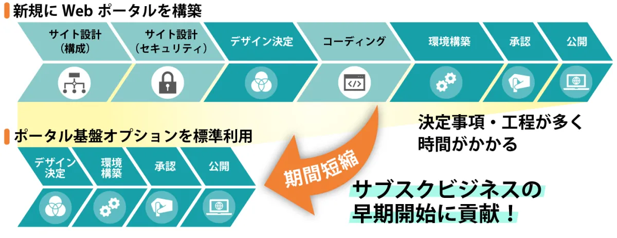 本オプションの導入によって、時間を大幅に短縮したWebポータルの構築が可能になります。企業の個別デザイン依頼に応じてカスタマイズが行われるため、各企業のニーズに合ったポータルが実現できます。
