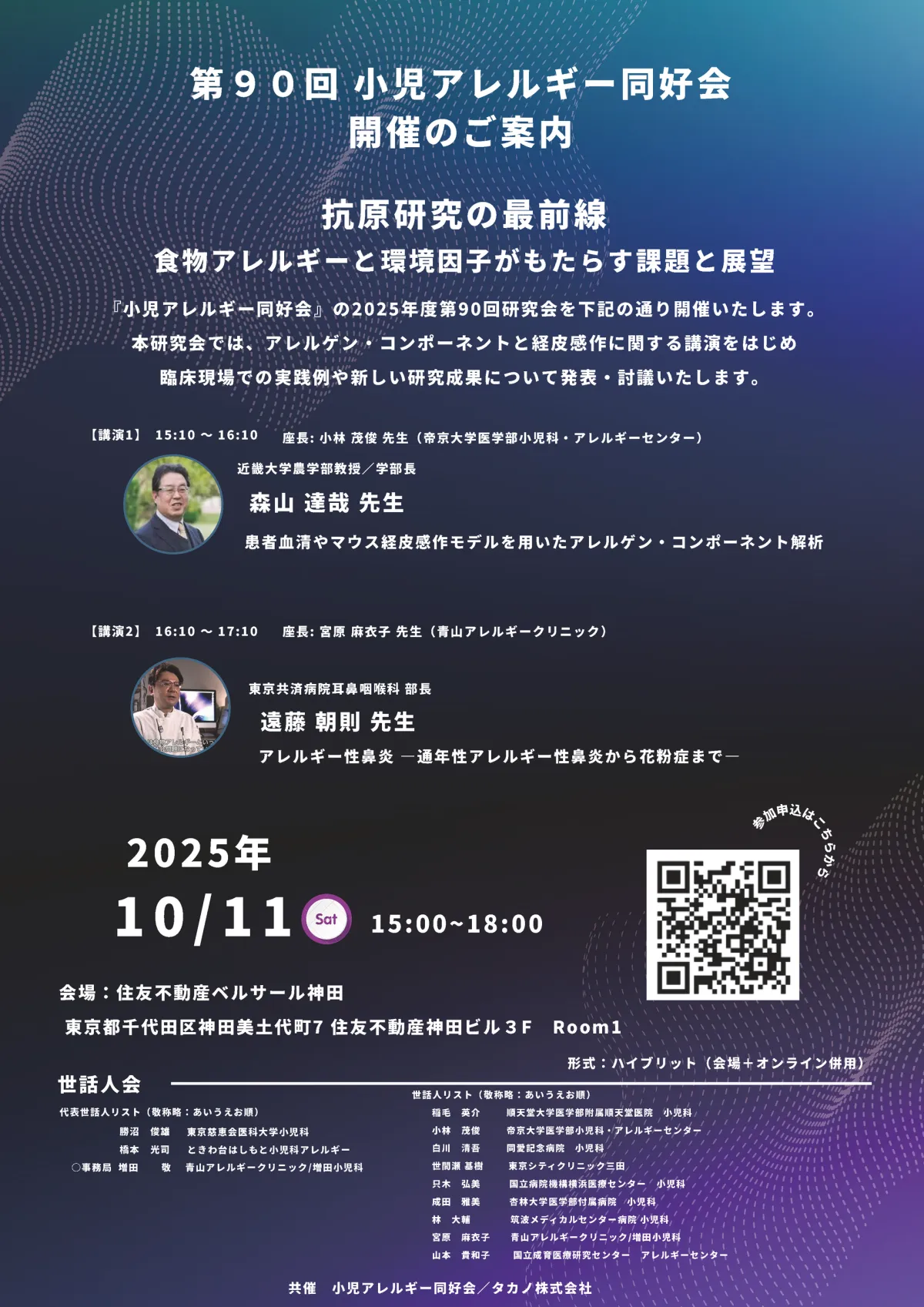 2025年10月11日(土)、東京都千代田区の住友不動産ベルサール神田にて、「第90回小児アレルギー同好会」が開催される。今回のイベントは、タカノ株式会社との共催で行われ、医療現場での課題解決を目指す重要な機会となっている。