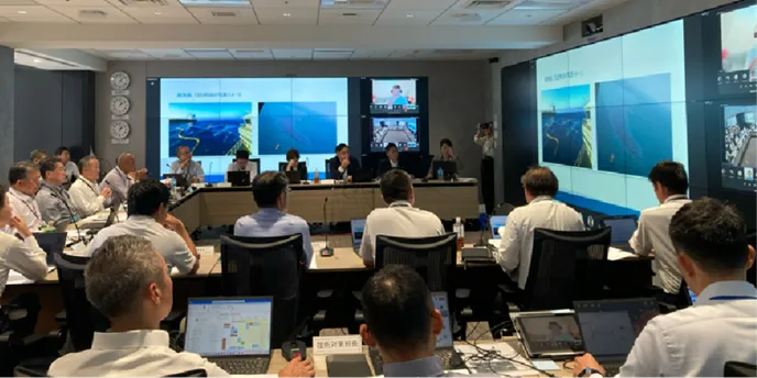 この訓練では、仮想の事故シナリオに基づいて、実際の緊急時における対応を検証しました。特に、SeaLoading社が所有するCargo Transfer Vessel(CTV)が事故に遭遇する状況を想定し、円滑な連携ができるかどうかを確認しました。訓練にはSeaLoading社会員や商船三井の役職員も参加し、事故発生時の具体的な対応策をテーマ別に討議しました。