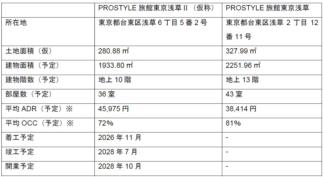 株式会社LogProstyleが新たに開発を進めている「PROSTYLE旅館東京浅草Ⅱ(仮称)」は、2028年の開業を目指しており、浅草エリアの観光名所に近接した立地に位置しています。
