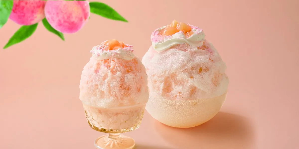 新商品「天然水の削り氷白桃みるく」は、削り氷の上に桃と練乳を合わせた甘さ控えめな桃みるくソースをたっぷりとかけ、さらに新鮮な白桃の果肉とホイップクリームをトッピングしています。サクサクの氷とフルーティーな桃のコラボレーションが、初夏の暑さを吹き飛ばす爽やかな味わいを楽しませてくれます。