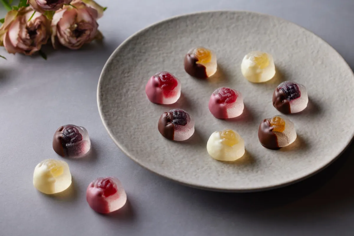 果内水晶ショコラは、数量限定の100個のみ販売され、パート・ド・フリュイが閉じ込められた琥珀糖に、4種の異なる味わいのチョコレートがセットされています。これにより、甘酸っぱいゆずやカシスの香りとチョコレートの味わいが見事に調和し、特別なスイーツ体験を提供します。価格は4,000円(税込)で、数量限定のためお早めにお求めください。