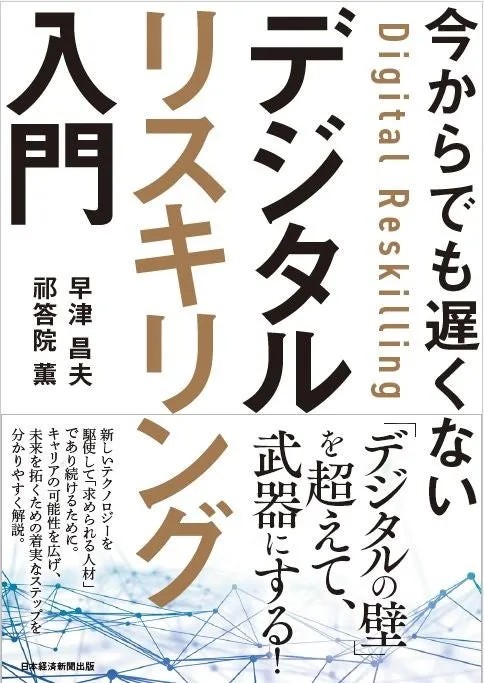 「今からでも遅くない デジタル・リスキリング入門」は、著者にトレノケートの代表取締役社長である早津昌夫氏と、デジタル教育推進機構理事長の角田仁氏(ペンネーム:祁答院薫)を迎えた共著です。この書籍は「DX(デジタルトランスフォーメーション)の必要性」や「学び直しの方法」についての疑問に答える内容になっています。デジタルスキルの習得に悩む方々が最初の一歩を踏み出せるよう、基本から解説しています。