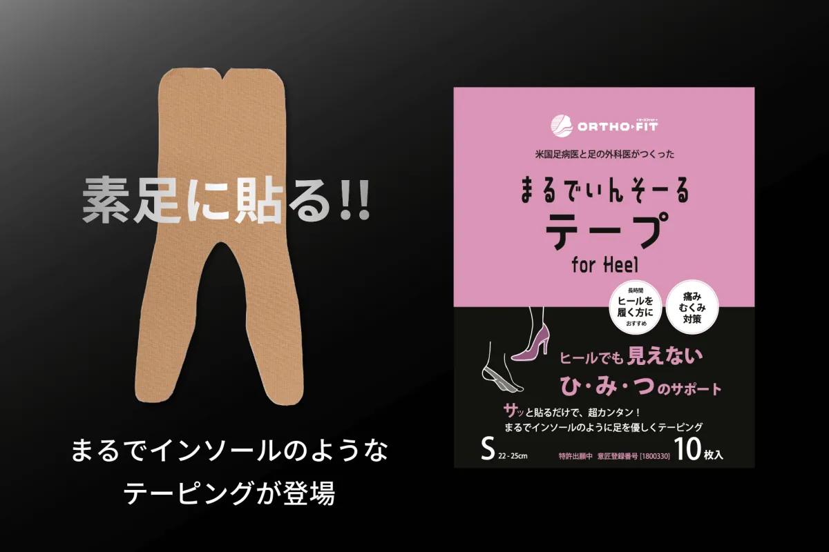 株式会社オースフィットが新たに設計した「まるでいんそーるテープ for Heel」は、靴のデザインを選ばずに足裏に直接貼ることができる画期的な作品です。医療の分野で使用されてきた足裏サポート技術を一般向けに活用したこの商品は、テーピングによるアーチサポートを実現します。特許申請中で意匠登録もされているこの商品は、理学療法士などの専門家のみが行える施術を、誰でも簡単にこなせるようにしたものです。