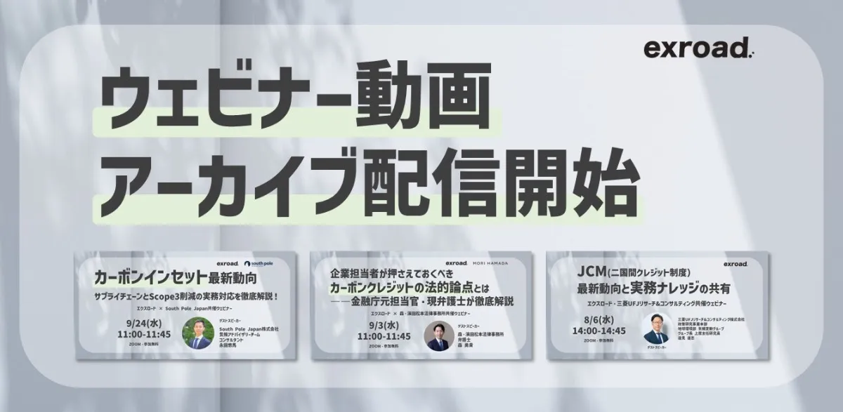 exroadは、2024年7月以降、毎月一回の頻度でカーボンクレジット市場に関するウェビナーを実施してきました。これまでのウェビナーはリアルタイム視聴のみであったため、参加希望者の中には「予定が合わず視聴できなかった」という声が多数寄せられていました。このようなニーズに応じて、アーカイブ配信の導入が決定されたのです。