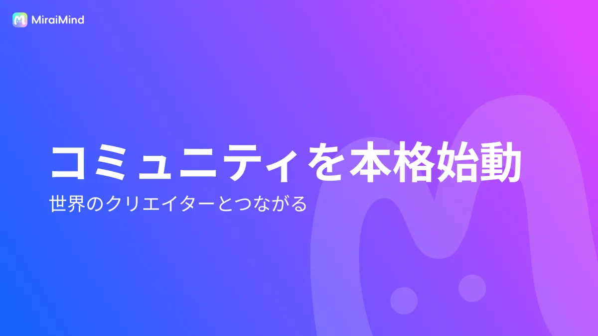 MiraiMindは今後もコミュニティ機能をさらに充実させ、クリエイター同士が深くつながる環境を整えていく予定です。定期的にテーマ別の創作コンテストや人気クリエイターとのコラボ企画も計画しており、AI時代の新たな創作の拠点として、誰もが気軽に作品を制作し、世界中の仲間とつながる場を目指していきます。