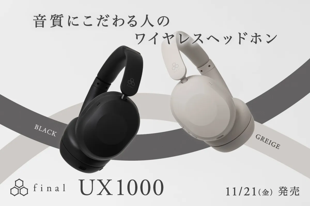 音質に妥協したくない方にぴったりのワイヤレスヘッドホン「UX1000」。音楽を愛するすべての人に、新たなサウンド体験を提供すること間違いなしです。ぜひ、この機会にUX1000をお手に取って、その魅力を実感してください。国内外で人気のfinalブランドの新作ヘッドホンを、今日からあなたの音楽ライフに取り入れてみてはいかがでしょうか。販売価格は7,980円(税込)で、2025年11月21日(金)より発売予定です。全国の家電量販店やイヤホン・ヘッドホン専門店でお求めいただけます。詳しくは、