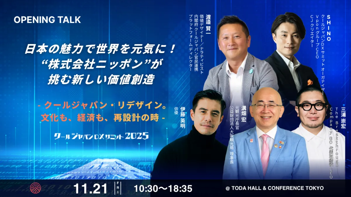 特に、クールジャパン関連事業に携わる方々、海外展開やインバウンド事業を強化したい方々、そしてデジタル変革に挑むリーダーたちにとっては、大変有益な機会となることでしょう。
