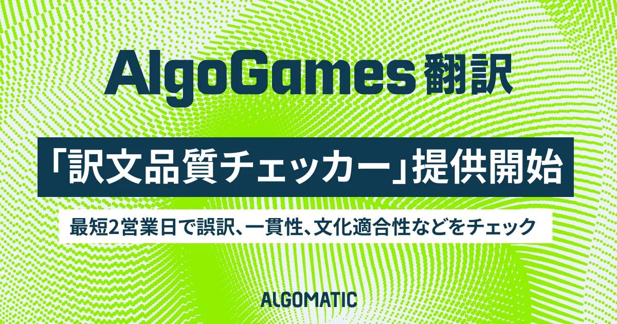 株式会社Algomaticが新たに提供する『訳文品質チェッカー』は、ゲーム翻訳の質を大幅に向上させる画期的なサービスです。本サービスは、独自に開発されたAI技術を駆使し、ゲーム翻訳における誤訳や表現の不一致、地域性の問題などを多角的に検知・改善提案を行います。最短2営業日でチェック結果を納品するため、迅速な対応も魅力です。
