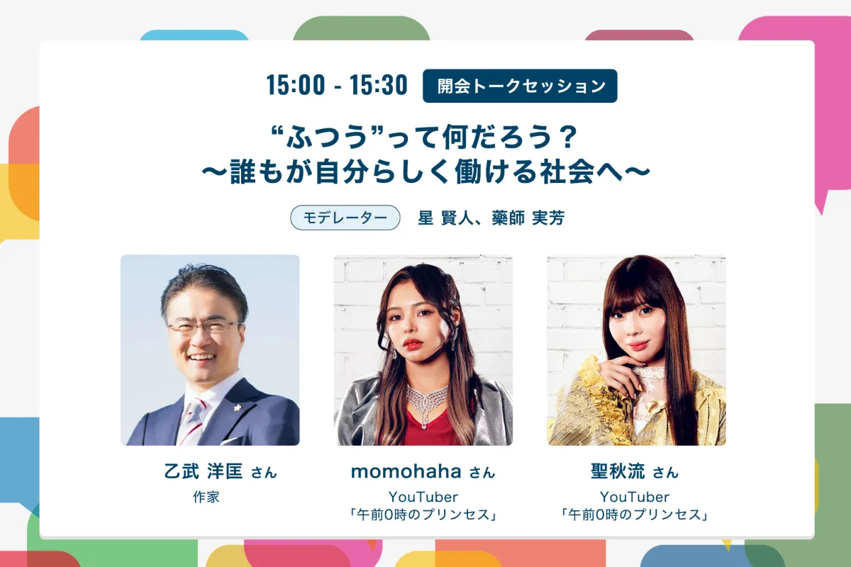 乙武 洋匡さんがトークセッションを担当します。大学在学中に自著『五体不満足』を発表し、ベストセラーを記録した乙武さんは、障害を持つ人々の視点から「普通とは何か」を問いかけ、誰もが自分らしく働ける社会の実現に向けたアプローチを語ります。