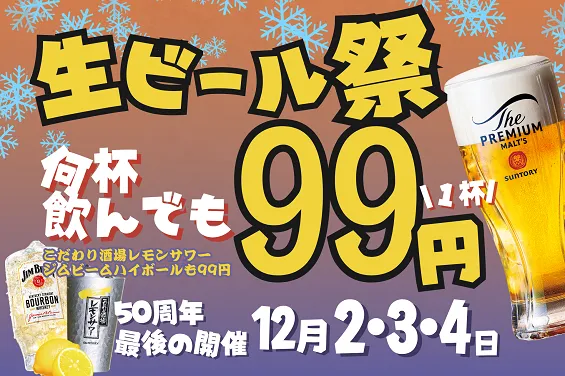「生ビール99円祭」のお知らせ