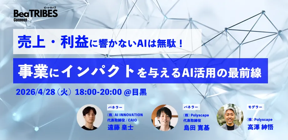 企業のAI導入が進展する中で、AIの活用が単なる業務改善にとどまるケースが多く見受けられます。最近では、AIを活用しても売上や利益に結びつかないという課題が浮上していることを背景に、2026年4月28日(火)に東京都品川区の「BLOCKS MEGURO」にて、株式会社AI INNOVATIONと株式会社Polyscapeが共同で「売上・利益に響かないAI導入は無駄!事業にインパクトを与えるAI活用の最前線」と題した特別セミナーを開催します。