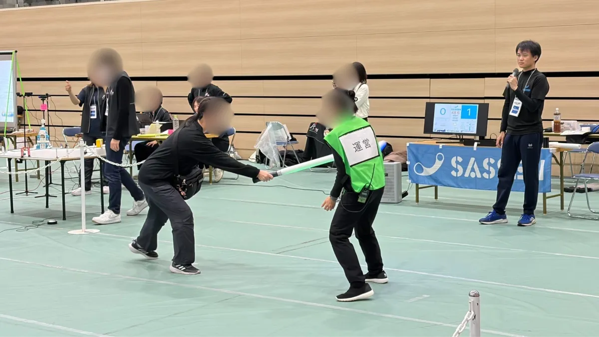 当日は、約500人の方々が来場。会場の中でも特に注目を集めたのが、一般社団法人全日本サッセン協会が出展したデジタルチャンバラ「SASSEN」体験ブースです。このブースでは、センサー判定やLED演出を駆使した「サイバーチャンバラ」を体験でき、幅広い年代の参加者が盛り上がりました。特に、車椅子を利用されている方々にも無理なく楽しんでいただける内容となっており、障がいの有無や年齢を問わず熱い真剣勝負が繰り広げられました。