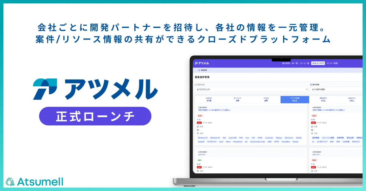 株式会社Atsumellは「システム開発の負をなくし、日本のITを再定義する」をミッションに掲げており、今後も業界をリードする革新を続けていく所存です。