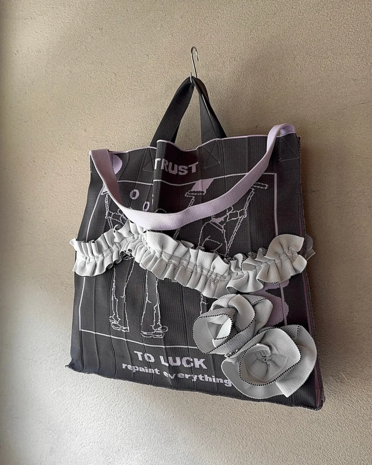 ここでは、KNT365の象徴的なバッグ「Mam」や「Knitty」のアップサイクル版が展開されています。これらはどれもそれぞれ異なる編地や色合いを持ち、唯一無二の作品として直接購入できます。