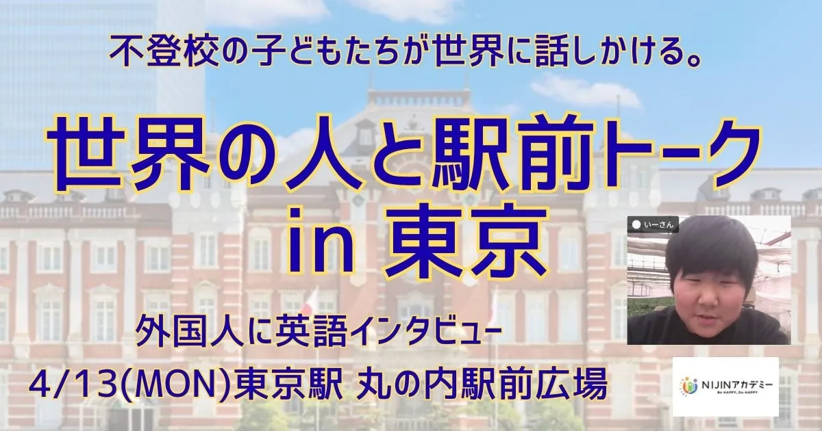 2026年4月13日、東京駅の丸の内駅前広場でユニークなプロジェクトが実施されます。それは、不登校の小学生たちが直接外国人観光客に英語でインタビューを行う「世界の人と駅前トーク」です。このイベントは、東京江東区にあるNIJINアカデミーの生徒たちが主体になって企画しました。
