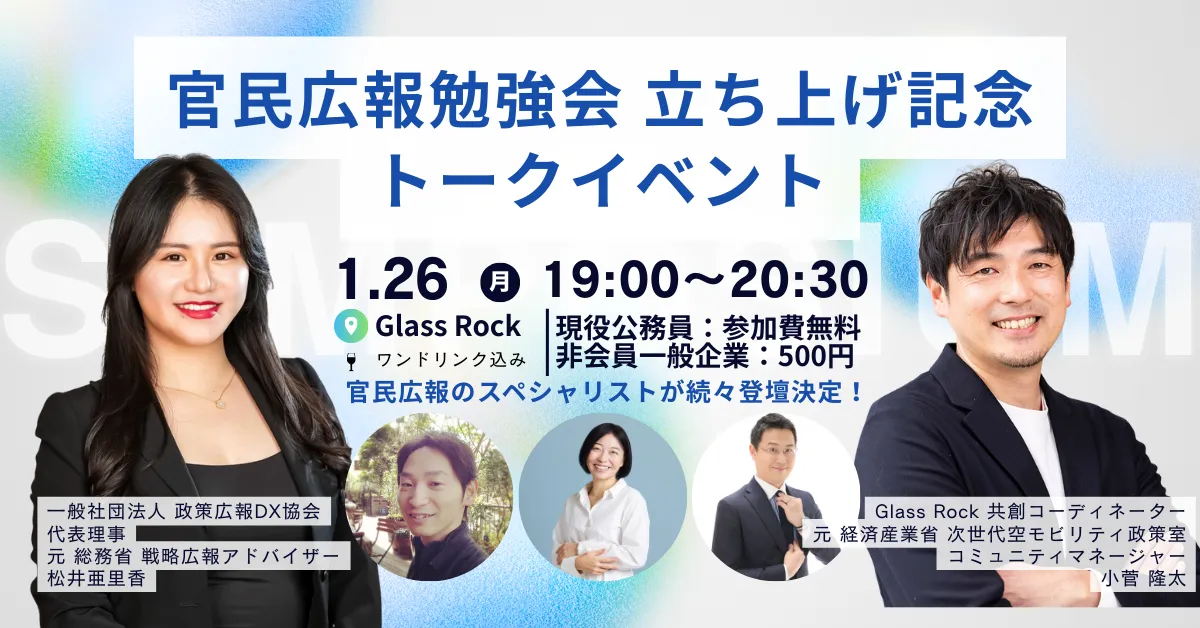このイベントは、政策を効果的に伝えたい行政関係者や、官民連携プロジェクトを広報で加速させたい民間企業の担当者、「正しい情報を届けたい」と願うすべての方におすすめです。ぜひ、共に学び合い、広報の力で社会を変える意義を感じてみてください。