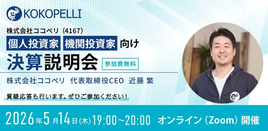 2026年5月14日(木)に、株式会社ココペリが個人投資家と機関投資家向けにオンライン形式で決算説明会を開催します。詳細についてご紹介します。