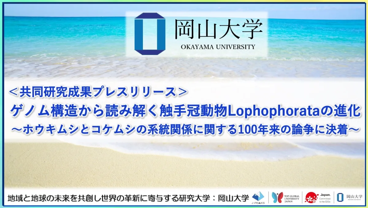 この研究成果は、2025年11月8日付けで米国の科学雑誌「Current Biology」に掲載されました。研究に参加したメンバーたちによる論文では、ホウキムシのゲノムがどのように触手冠動物群の進化を支持するものなのかが詳細に述べられています。