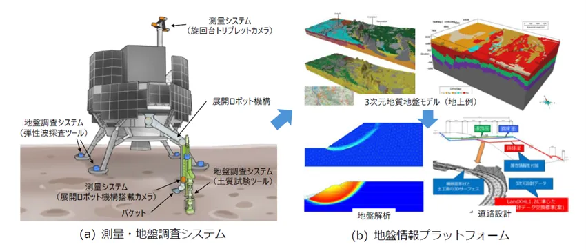 本プロジェクトにおいて基礎地盤コンサルタンツは、月面における地盤情報プラットフォームを開発します。具体的には、三次元地質地盤モデルを作成し、これに基づいて様々なリスクアセスメントを行うことで、月面における土木設計を確実なものとする予定です。