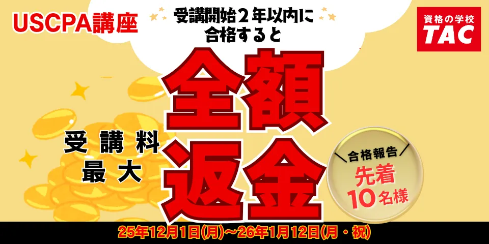 2025年12月1日から2026年1月12日まで、TACが提供するUSCPA講座で受講料が全額返金されるキャンペーンが実施されます。この魅力的なオファーは、資格取得を目指す受験生の方々にとって貴重なチャンスです。
