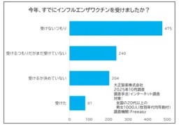 大正製薬株式会社が行った調査によると、20代以上の男女1000人中8.1%の人が既にインフルエンザワクチンを接種したと答えています。接種した理由で多かったのは「毎年必ず接種している」ことや「流行時期が早まっていると聞いたから」という意見です。一方で、接種をしない理由では「お金がもったいない」という意見や「効果に疑問がある」といった理由が挙げられています。