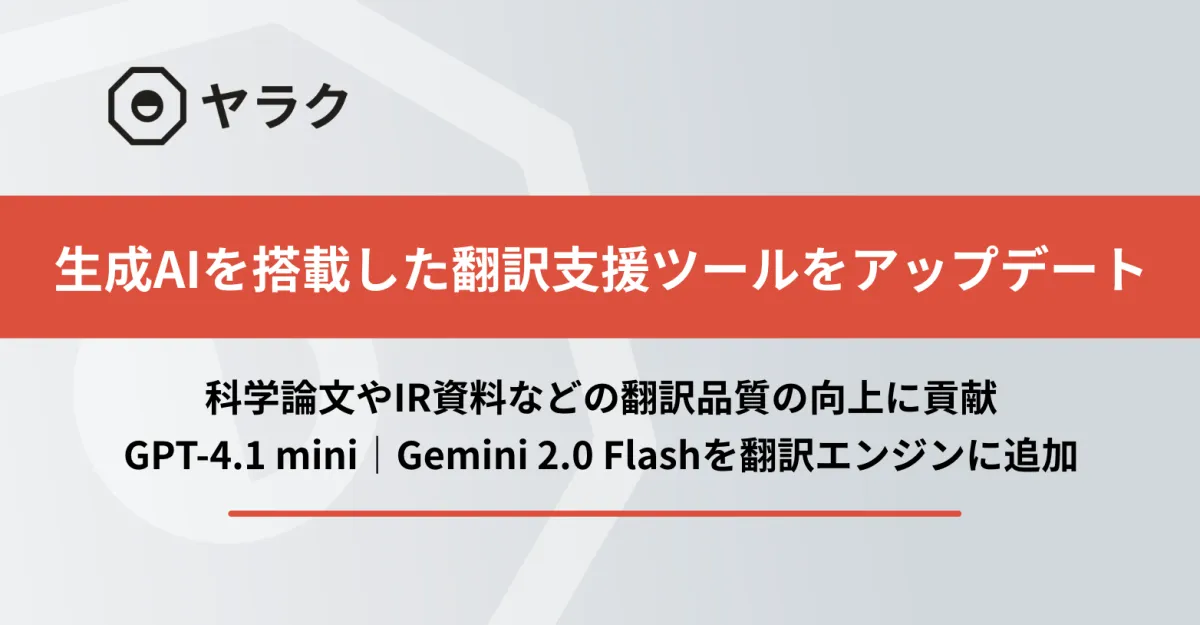 八楽株式会社は、最新の翻訳支援ツール「ヤラク翻訳」を2025年の7月にアップデートし、新たに搭載した機能を発表しました。この更新により、翻訳の質と効率が飛躍的に向上しました。