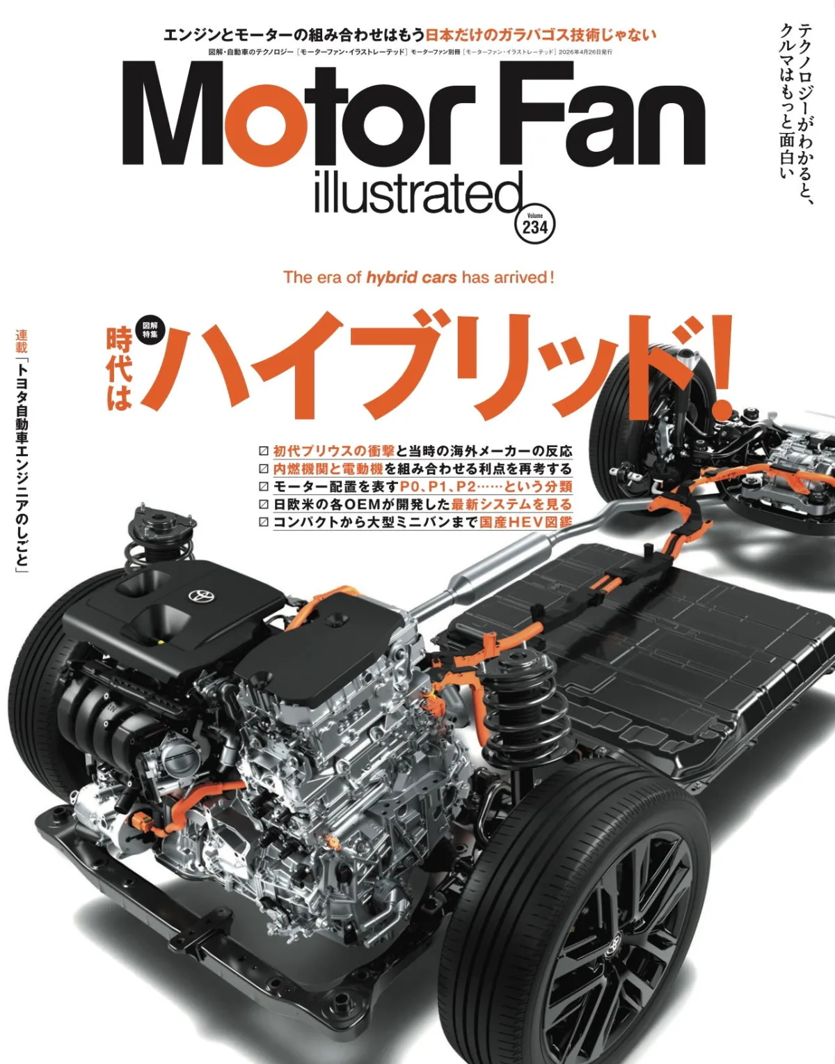 2026年3月13日、新たに発売される『モーターファン・イラストレーテッド Vol.234』。今回は、特集テーマ「時代はハイブリッド!」ということで、自動車業界におけるハイブリッド技術の進展を詳しく解説しています。この特集では、ハイブリッドシステムの基礎知識から最新技術まで、幅広く取り扱われています。