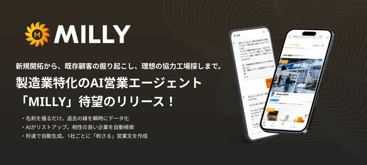 株式会社Millyが製造業特化のAI営業エージェント『AIジョー』を本格的にリリースしました。この新機能は、ターゲット企業の特定から営業メールの作成まで、全てを自動化し、製造業の営業プロセスを大きく変革することが期待されています。