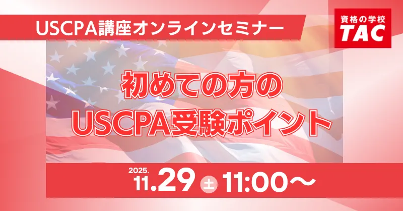 TACが提供するオンラインセミナー「初めての方のUSCPA受験ポイント!」が、2025年11月29日(土)11:00から開催されます。