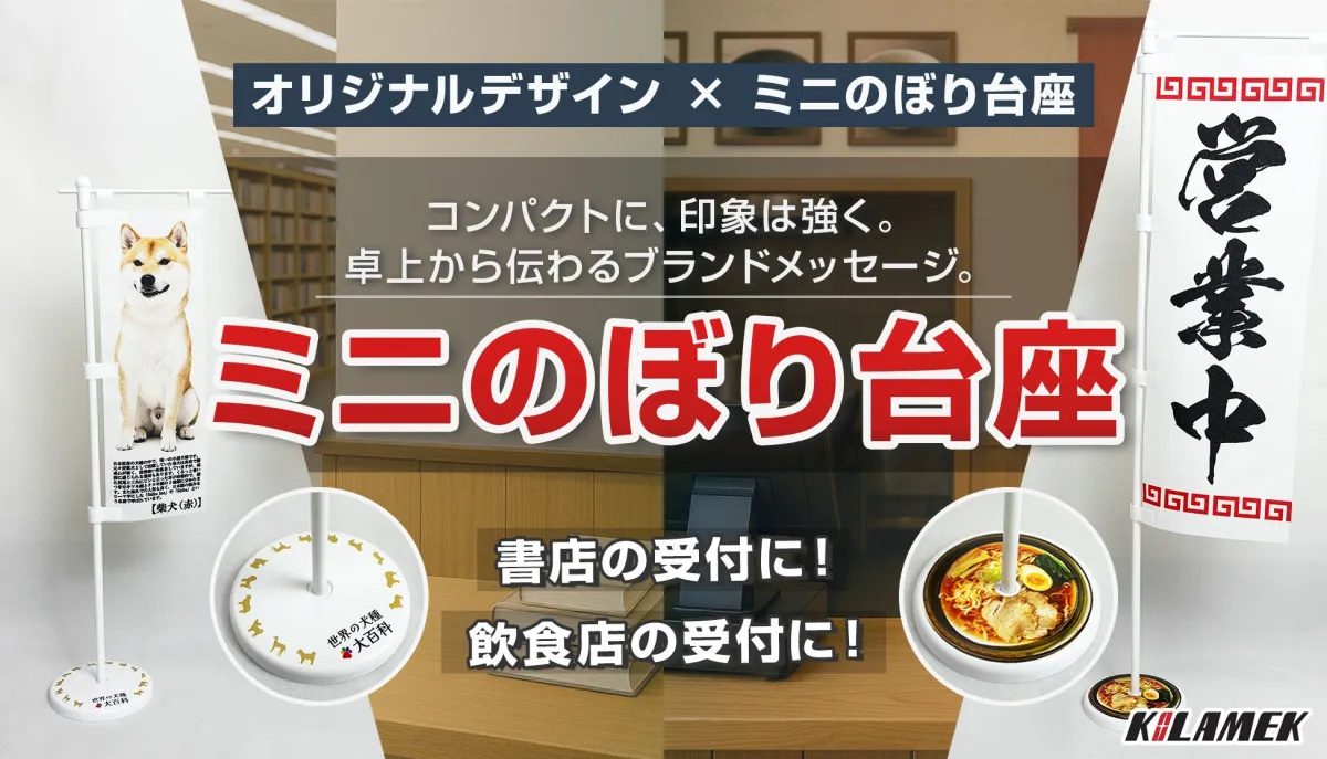 株式会社KILAMEKが展開する人気商品、ミニのぼりシリーズに新たに登場した「ミニのぼり台座」が話題を集めています。多彩なシーンで使えるこの商品は、店舗のカウンターや受付、さらには展示ブースなど、さまざまな場所で活躍すること間違いなしです。