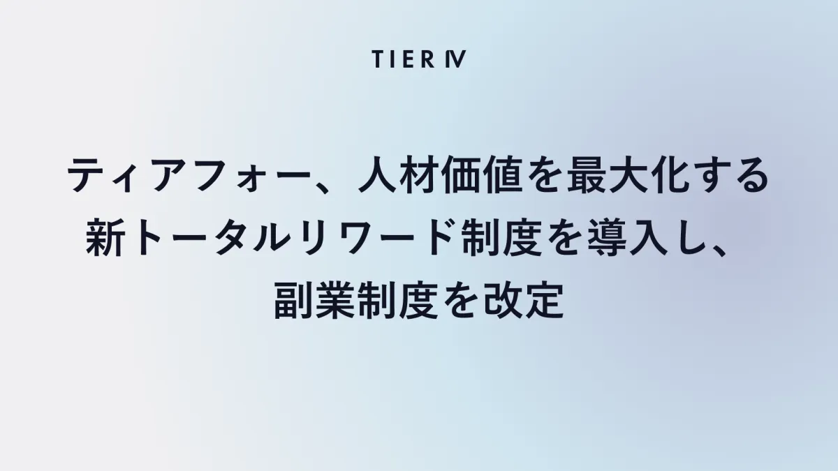 自動運転の実現に向けて急速に進化する株式会社ティアフォー(東京都品川区)では、2025年10月1日より新たなトータルリワード(報酬・評価・評価制度)を導入することを発表しました。この取り組みは、企業ビジョン「自動運転の民主化」を具現化するため、グローバルな人材を引き寄せ、その力を最大限に発揮してもらうことを目的としています。