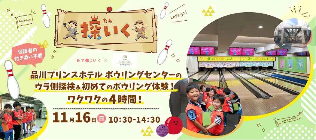 2025年11月16日(日)、品川プリンスホテルのボウリングセンターで、あすいくの体験型一時保育「探いく」シリーズの新企画が開催されます。このプログラムは、保護者が安心して預けられる場所で、子どもたちが楽しく遊びながら学ぶ機会を提供します。