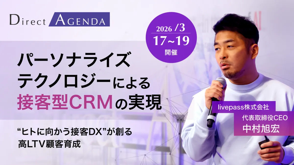 2026年3月に熊本で開催されたマーケティングカンファレンス「ダイレクトアジェンダ2026」で、livepass株式会社が注目を集めました。代表取締役CEOの中村旭宏氏が登壇し、企業の顧客関係管理(CRM)を刷新する「接客型CRM」について提案しました。この新しいアプローチによって、どのように顧客体験が向上するのか、その全貌に迫ります。