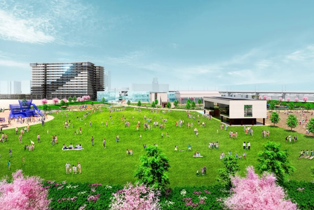 今回のプロジェクトは、過去に地域の拠り所だった公園を活用し、マンションと商業エリアを融合させることで、住民の生活の質を向上させることを目的としています。公園の中心には、芝生広場や多目的広場、遊具広場、さらにはドッグランが設置され、年齢を問わず誰もが楽しめる環境が整えられます。これは地域イベントやスポーツイベントの開催にも対応可能な設計で、多くの人が集まり交流できる空間が創出されます。