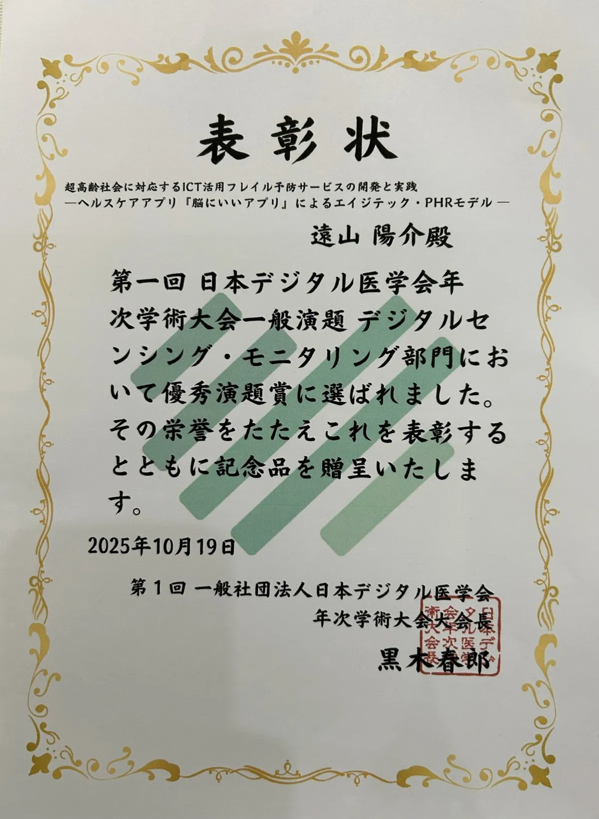 株式会社ベスプラが提供するヘルスケアアプリ『脳にいいアプリ』が、2025年10月に開催される「第1回 日本デジタル医学会 年次学術大会」で優秀演題賞を受賞することが発表されました。この発表は、超高齢社会に向けたICT活用のフレイル予防サービスの成果を報告したもので、大きな注目を集めています。