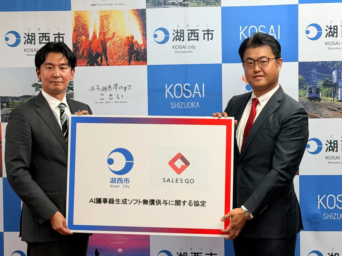 静岡県湖西市は、SALES GO株式会社との協定を結び、AI議事録生成ソフト「GoCoo! Meeting」を無償で提供されることとなりました。この協定は、地元出身の内山雄輝社長が率いるSALES GOが、郷土の発展に寄与を目指したものです。