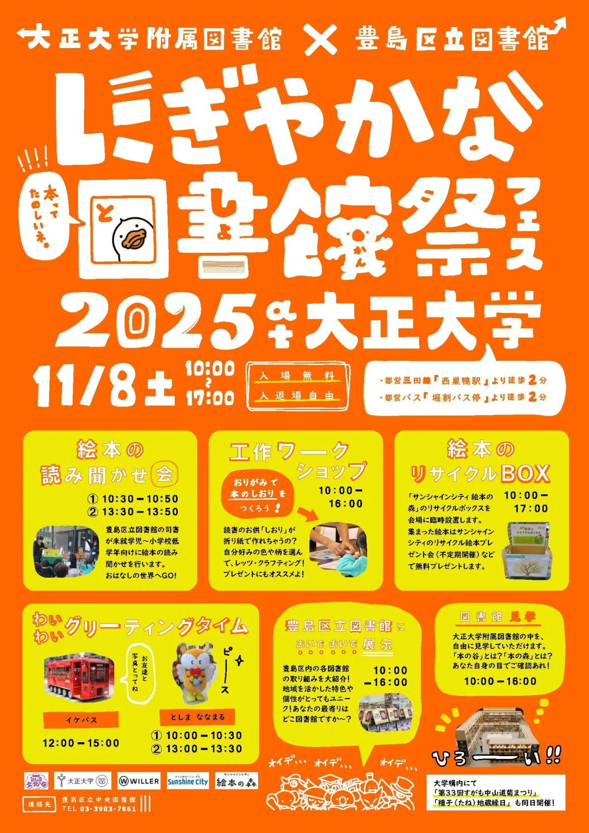 11月8日土曜日、東京都豊島区にある大正大学附属図書館にて毎年恒例の「にぎやかな図書館祭(フェス)」が開催されます。このイベントは、豊島区立図書館と協力して行われるもので、地域の文化振興を目的とした催し物です。