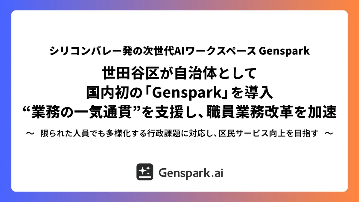 世田谷区が次世代AIワークスペース「Genspark」を導入