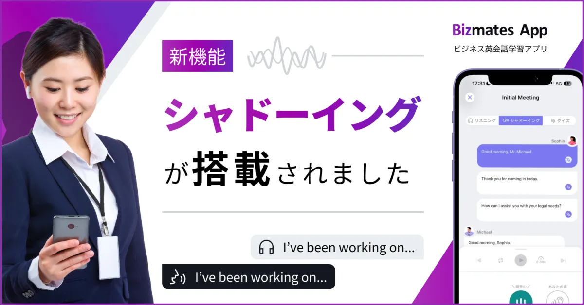 ビジネス特化型オンライン英会話サービス「Bizmates(ビズメイツ)」を展開するビズメイツ株式会社が、2025年8月6日に英語学習アプリ「Bizmates App」に新機能「シャドーイング」を追加しました。この機能は、忙しいビジネスパーソンがスキマ時間を利用して効率的に英語力を向上させるためのものです。